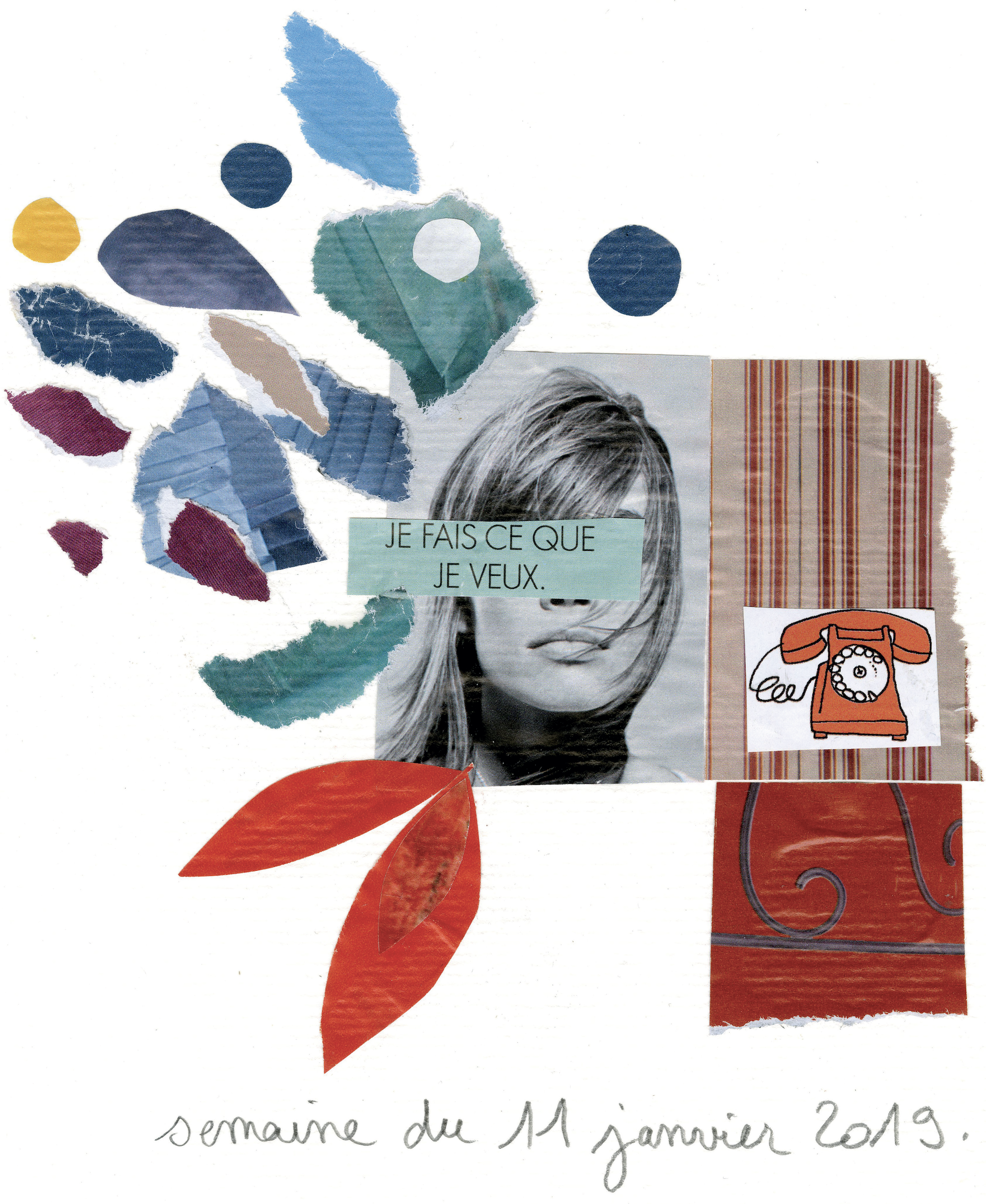 For the past eight years, she has created a collage every week from the pages of ELLE magazine, in what has now become a time-honoured artistic ritual. In this series, entitled Elle m’inspire, she allows herself just three tools: scissors, glue and the ELLE issue of the week – and nothing else.